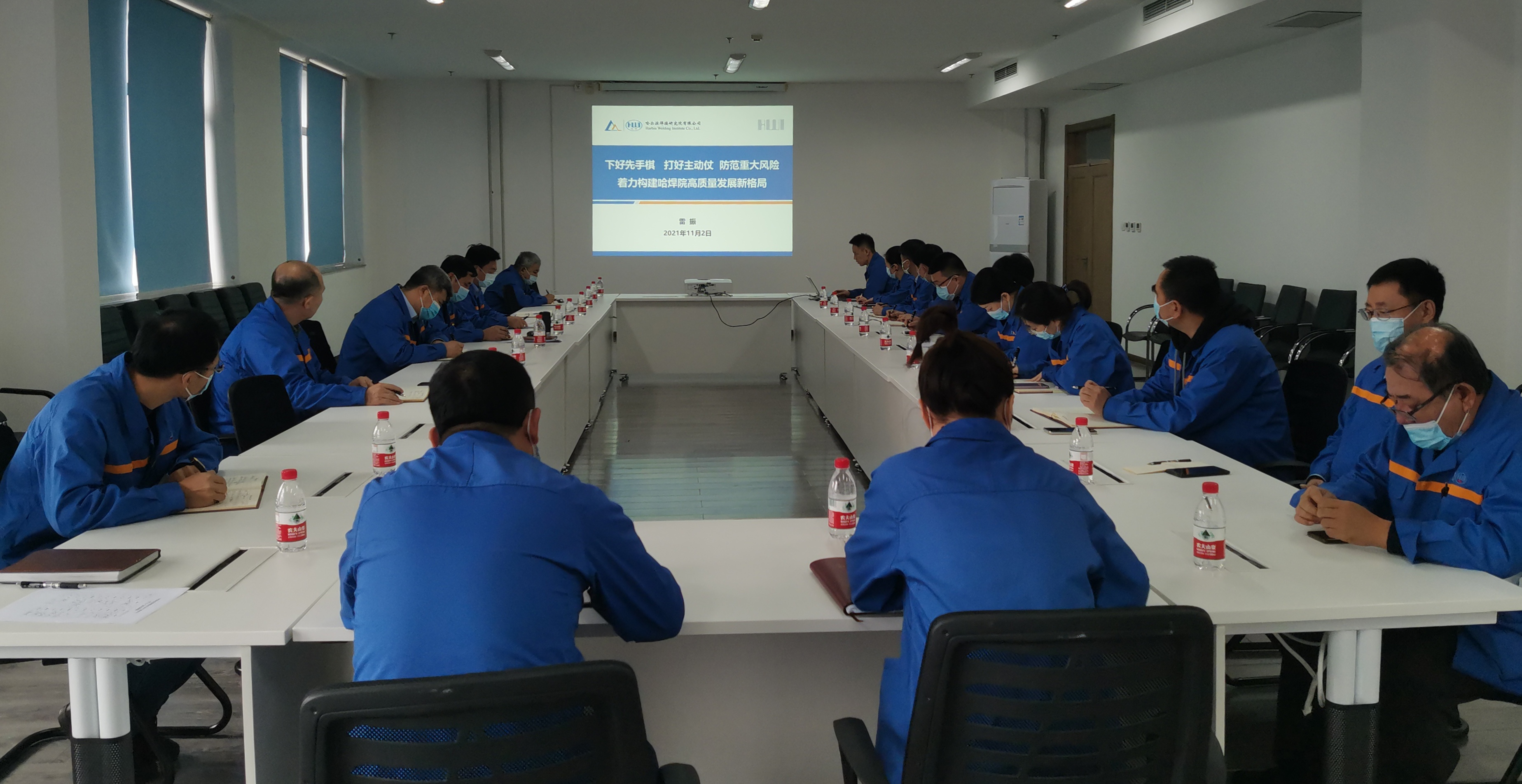 11月2日,哈焊院召開年度第七次黨委理論學(xué)習(xí)中心組學(xué)習(xí)(擴(kuò)大)會議,深入學(xué)習(xí)領(lǐng)會習(xí)近平總書記關(guān)于防范風(fēng)險(xiǎn)挑戰(zhàn)以及法治建設(shè)的重要論述,研究探討哈焊院潛在風(fēng)險(xiǎn)挑戰(zhàn)及應(yīng)對措施。哈焊院黨委書記、董事長楊玉亭主持會議,領(lǐng)導(dǎo)班子成員、各下屬公司、部門負(fù)責(zé)人參加會議。