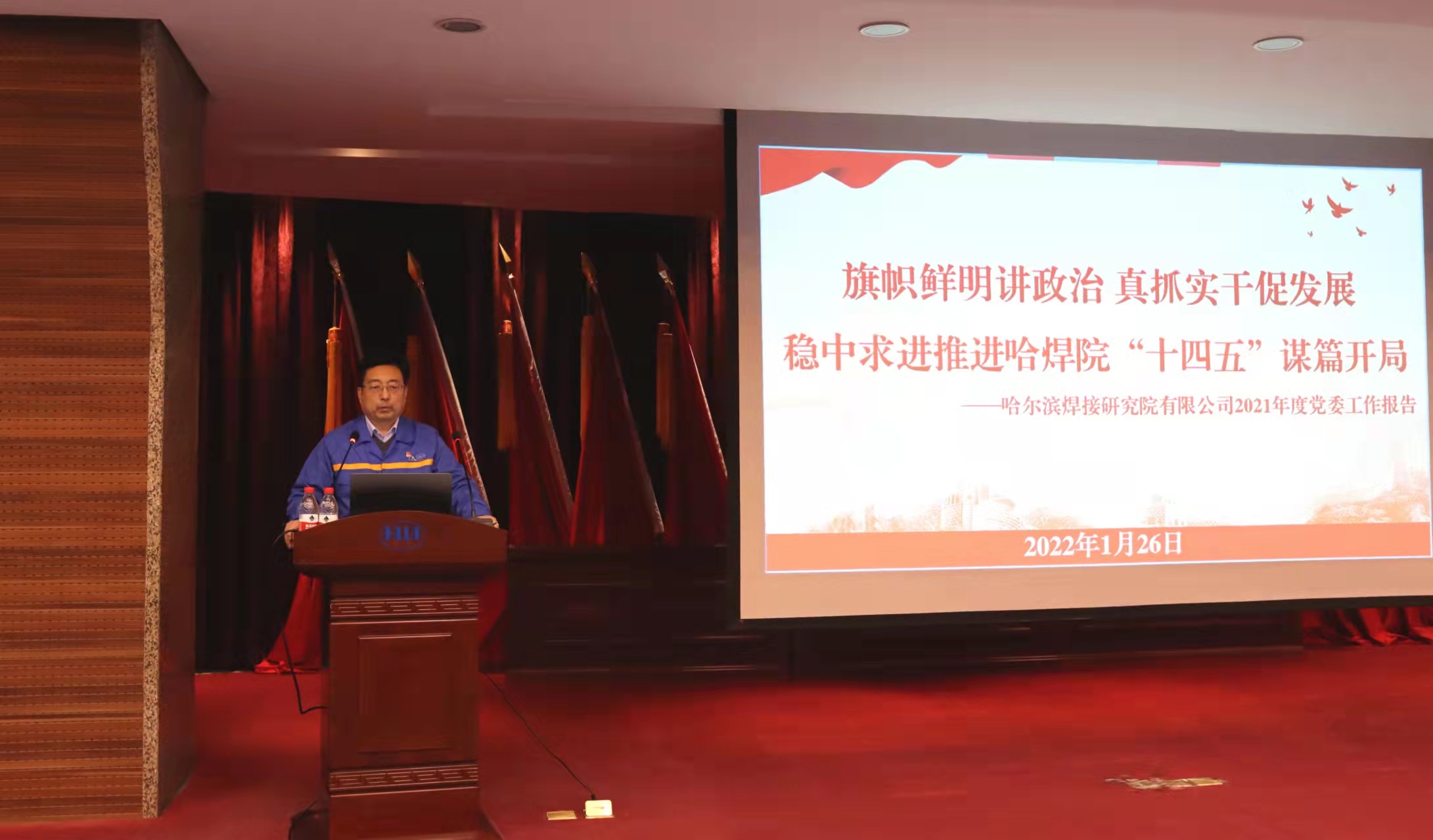 楊玉亭同志代表黨委作題為《旗幟鮮明講政治 真抓實干促發(fā)展 穩(wěn)中求進推進哈焊院“十四五”謀篇開局》的黨委工作報告,報告全面總結(jié)了哈焊院2021年黨建工作成果,分析了黨建工作存在的不足,明確了2022年黨建總體思路,部署了2022年的重點工作。