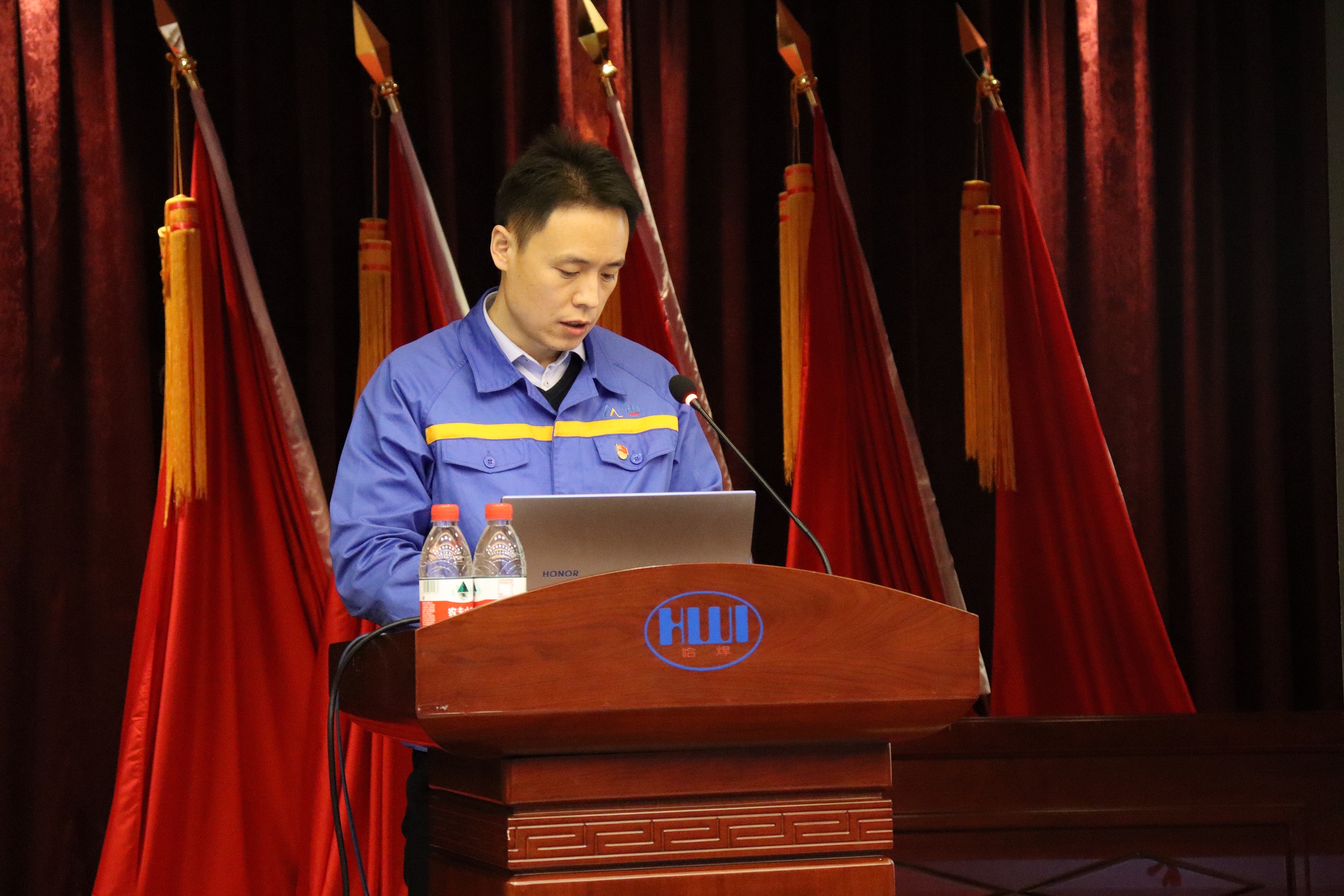 按照疫情防控要求,會(huì)議在本部學(xué)術(shù)報(bào)告廳設(shè)主會(huì)場,哈焊國創(chuàng)、哈焊華通、威爾公司設(shè)三個(gè)視頻分會(huì)場。哈焊院領(lǐng)導(dǎo)班子成員、中層干部、各黨支部書記及委員、下屬公司經(jīng)理層、關(guān)鍵崗位人員共計(jì)67人參加會(huì)議。