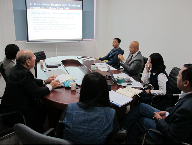 樸秘書(shū)長(zhǎng)首先對(duì)日本客人的到訪表示歡迎,他簡(jiǎn)要介紹了我國(guó)焊接標(biāo)委會(huì)的基本現(xiàn)狀(包括組織機(jī)構(gòu)、管理模式及標(biāo)準(zhǔn)體系)及近兩年的標(biāo)準(zhǔn)制、修訂情況;接下來(lái)由焊材中心楊子佳代表焊材分技術(shù)委員會(huì)介紹了中國(guó)焊材發(fā)展的現(xiàn)狀以及焊材分委會(huì)近期的標(biāo)準(zhǔn)化工作進(jìn)展。鈴木直樹(shù)先生也介紹了日本焊接工程協(xié)會(huì)的組織結(jié)構(gòu)、近兩年日本焊材標(biāo)準(zhǔn)的修訂情況和今后計(jì)劃修訂的日本標(biāo)準(zhǔn)概況。雙方就兩國(guó)標(biāo)準(zhǔn)發(fā)展現(xiàn)狀、ISO標(biāo)準(zhǔn)在本國(guó)的轉(zhuǎn)化情況及下一步工作打算進(jìn)行了熱烈地討論和交流。