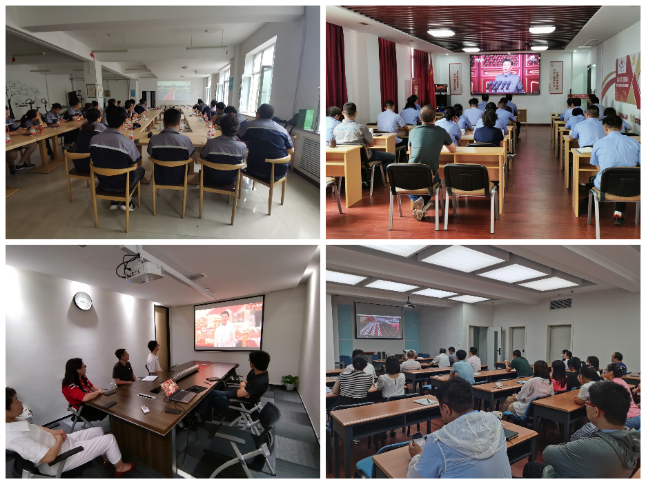 華通全通聯(lián)合黨支部在常州分會場、哈焊國創(chuàng)黨支部在青島分會場、威爾公司黨支部、焊培黨支部在各自分會場集中收看。