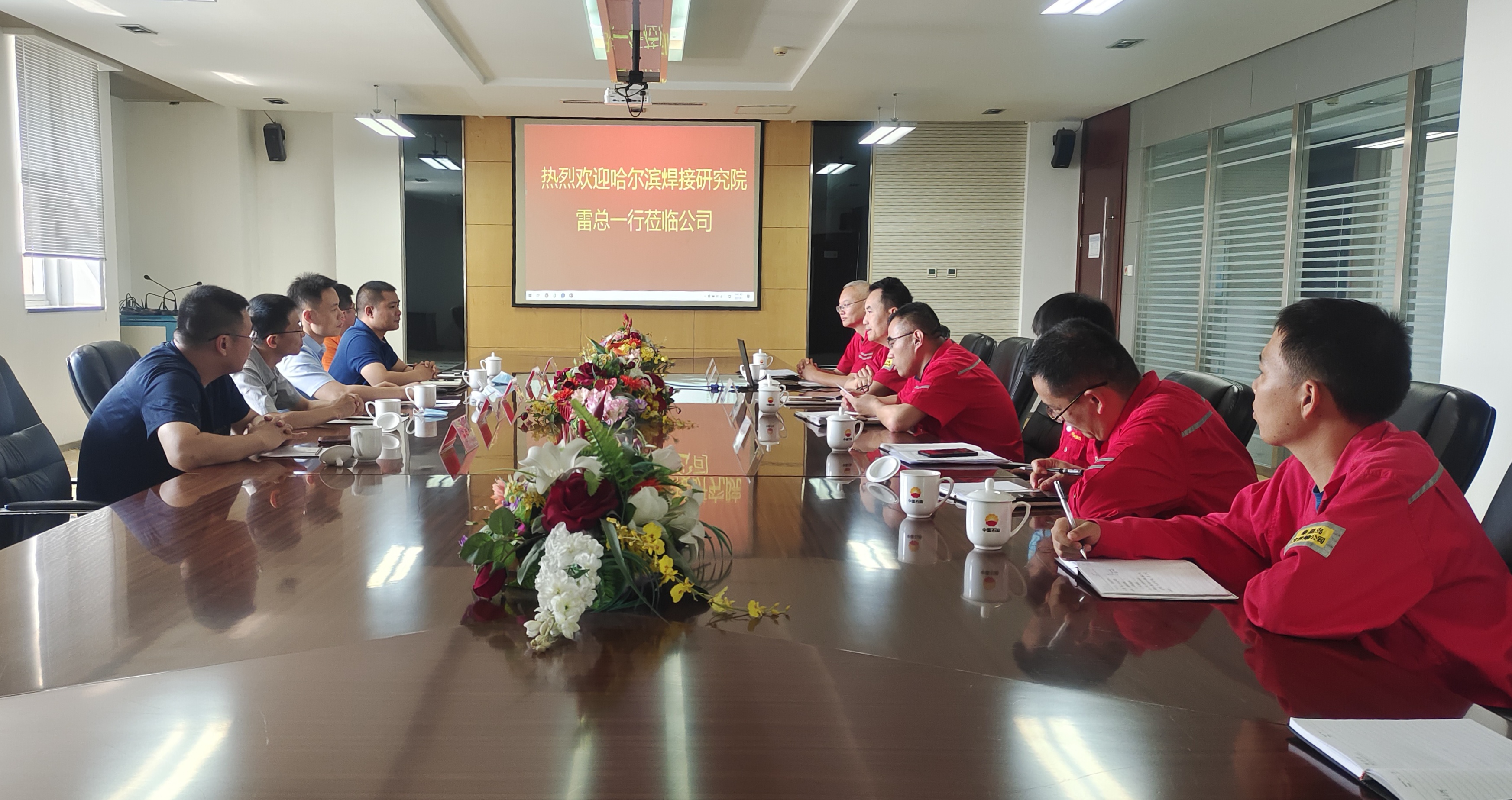 9月1日,哈焊院副總經(jīng)理雷振一行五人赴中油寶世順(秦皇島)鋼管有限公司考察交流,寶世順公司執(zhí)行董事、總經(jīng)理?;⑶笨偨?jīng)理張世濤出席交流活動(dòng)。
