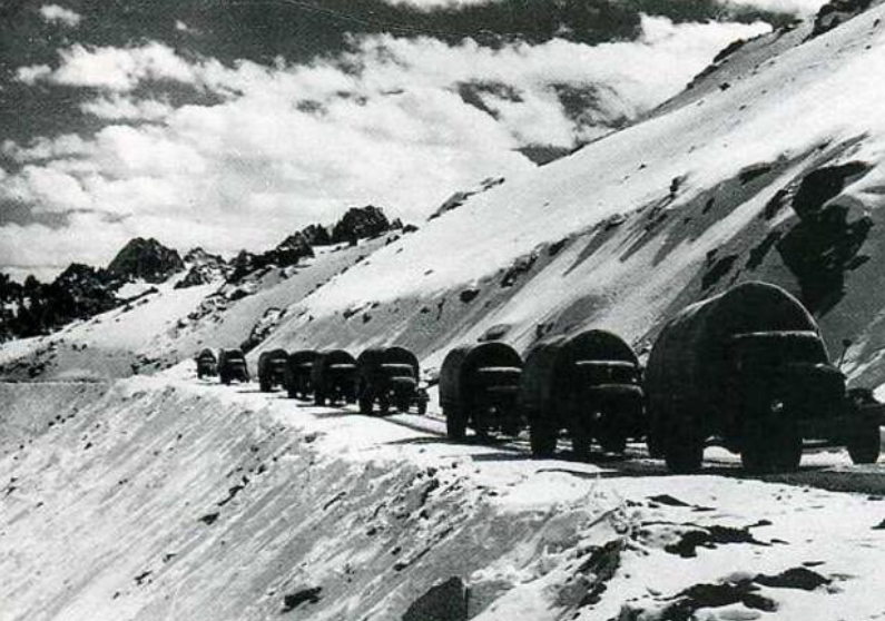 1954年12月25日,兩條當時世界上海拔最高的公路——康藏公路和青藏公路,分別從雅安和格爾木跨越崇山峻嶺修到了拉薩,并在同一天全線通車,結束了西藏幾千年來不通公路、沒有汽車的歷史。