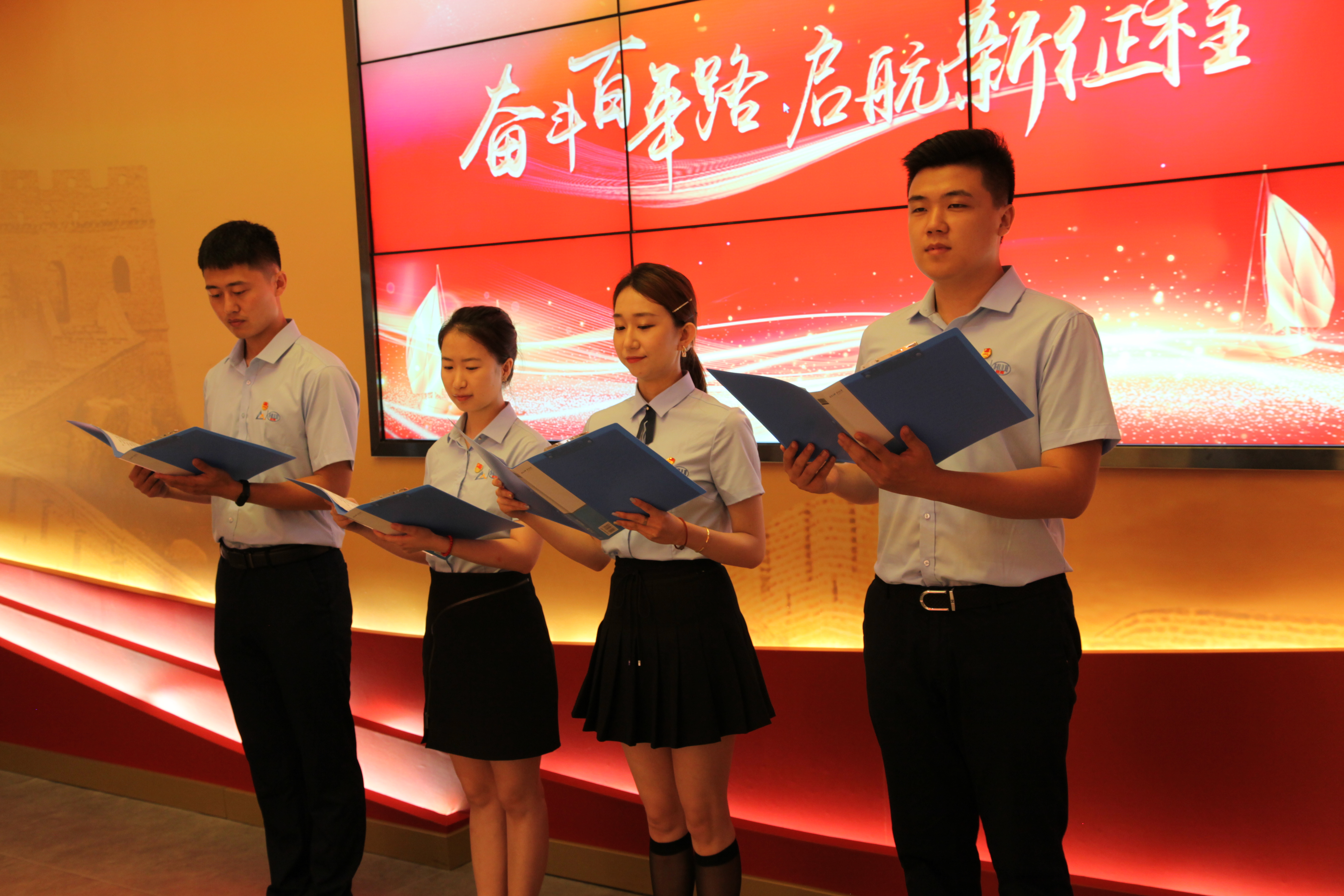 參觀結(jié)束后,全體黨員在宣誓廳面對(duì)黨旗,舉起右拳,莊嚴(yán)宣誓。青年團(tuán)員激昂獻(xiàn)辭,表達(dá)了對(duì)黨的無(wú)比崇敬和絕對(duì)忠誠(chéng),表達(dá)了傳承紅色基因、全力拼搏進(jìn)取的決心。