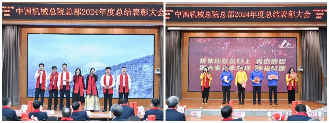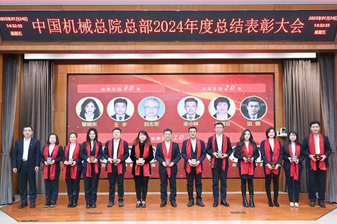 大會現(xiàn)場氣氛喜慶熱烈?!对鲂刨x能 攜手同行》短片,回顧2024年豐碩成果、展望2025年發(fā)展前景。各部門以視頻方式送來新春祝福。大會向光榮在院30年、20年、10年的干部職工頒發(fā)紀(jì)念章;對涌現(xiàn)出的先進(jìn)集體和優(yōu)秀個人進(jìn)行了表彰。集團領(lǐng)導(dǎo)為獲獎代表頒獎,獲獎代表感言分享成長喜悅、表達(dá)美好祝福。