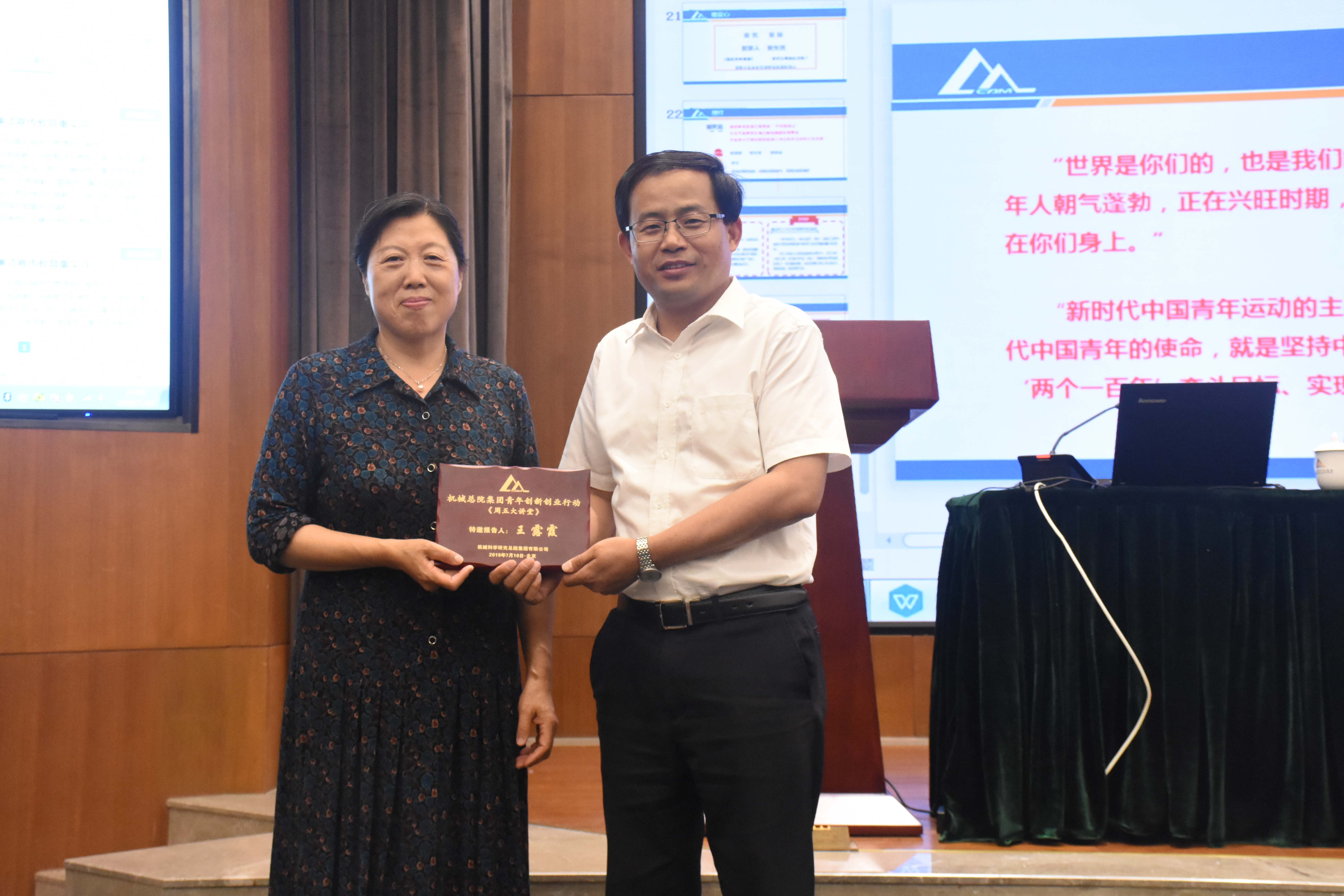 716日下午,人資部和機(jī)械總院集團(tuán)團(tuán)委共同舉辦了2019年第六期周五大講堂,本次講堂邀請到原機(jī)械總院黨委副書記、紀(jì)委書記、副院長王露霞同志,做題為建功立業(yè)新時代的主題講座,集團(tuán)單忠德副總經(jīng)理主持并為王露霞老師頒發(fā)紀(jì)念獎牌,總院集團(tuán)及在京各二級單位七十余名研究生、青年員工聆聽了本次報告。